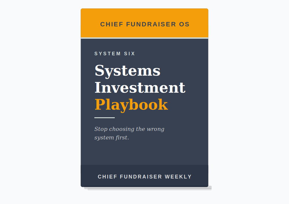 Hi Reader, A few weeks ago I made you a promise. I said I was turning something we'd been building together into a tool you could actually use. I said CFW readers would get it first. That's today. The Systems Investment Playbook is the exact process I used when I had five builds on our list and no good way to choose which one went first. One build that quarter. No more debate. The gift officer who was managing 1,000 prospects manually is now working a portfolio of 50 — the other 950 in...