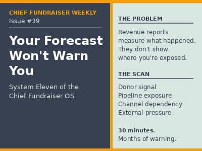 Your Forecast Won't Warn You Issue #394-minute read Hi Reader, Two years ago, we learned something the hard way. A corporate donor surprised us by deciding not to renew a seven-figure partnership. By the time it hit the dashboard, the window for recovery was already closing. The system wasn’t broken. It just didn’t warn us. Most fundraising dashboards are built to measure what happened. Very few are built to surface where you’re exposed. That difference matters when conditions change. Why...