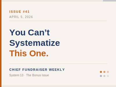 The Monday Email That Breaks Good Plans Issue #364-minute read Hi Reader, Your Rocks are set. Your team is aligned. Then Monday happens. Your CEO emails about a donor she met Saturday night. She wants to move on it this week. It feels urgent. You know what’s at stake if you say yes. You also know what’s at stake if you hesitate. This isn’t a CEO problem. It’s a systems problem. And it’s the most common reason well-planned quarters fall apart. The Gap Nobody Talks About Most chief fundraisers...